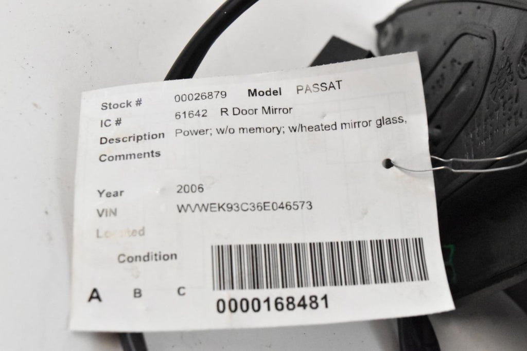 2006-2010 VOLKSWAGEN PASSAT PASSENGER RIGHT SIDE POWER DOOR MIRROR BLUE 26879