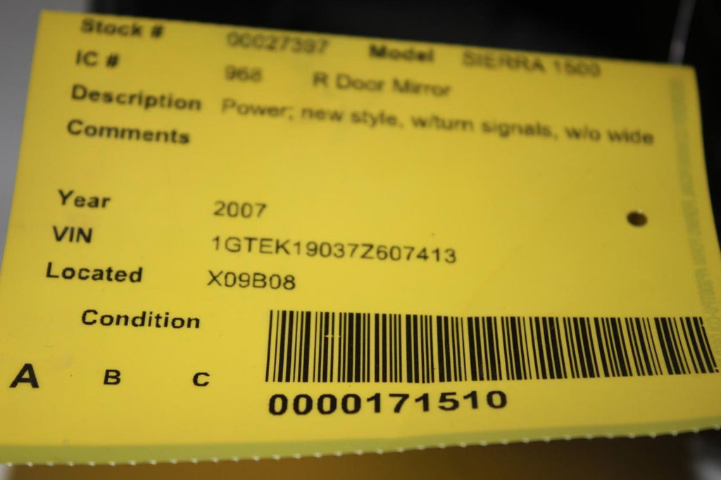2007-2013 CHEVY SIERRA TAHOE PASSENGER RIGHT SIDE POWER DOOR MIRROR