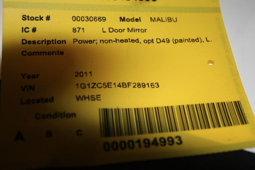 2008-2012 CHEVY MALIBU DRIVER SIDE POWER DOOR MIRROR SILVER
