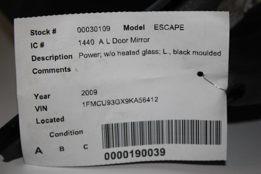 2008-2012 FORD ESCAPE DRIVER LEFT SIDE POWER DOOR MIRROR BLACK 27507