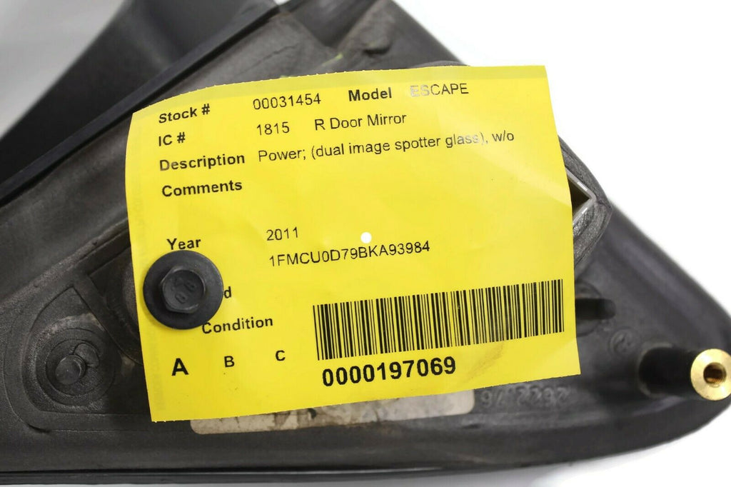 2010-2012 Ford Escape Passenger Right Side Power Door Mirror Black 31454