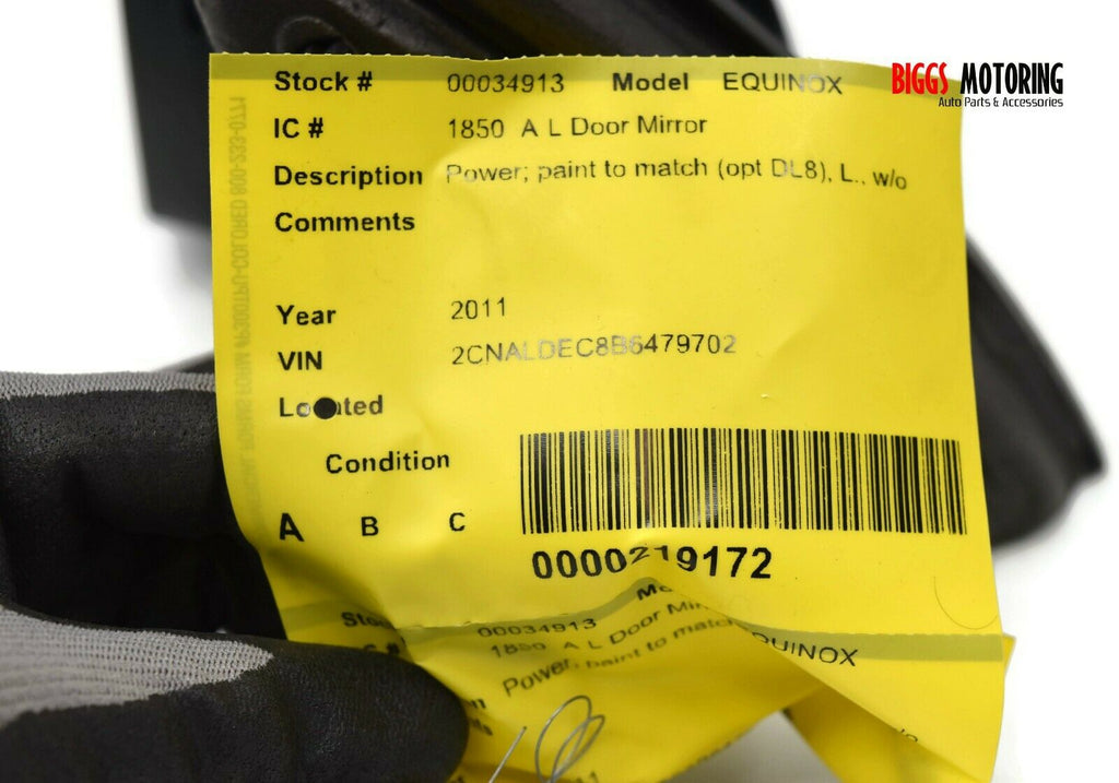 2011-2014 Chevy Equinox Driver Left Side Power Door Mirror Black 34913