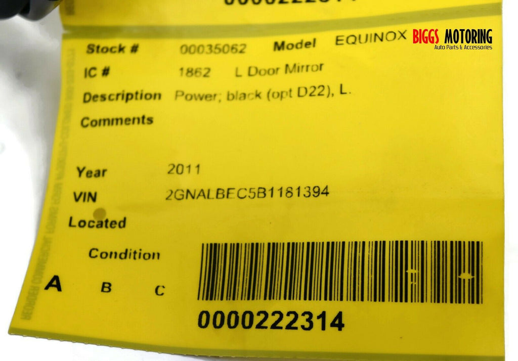 2011-2015 Chevy Equinox Driver Left Side Power Door Mirror Black 35062