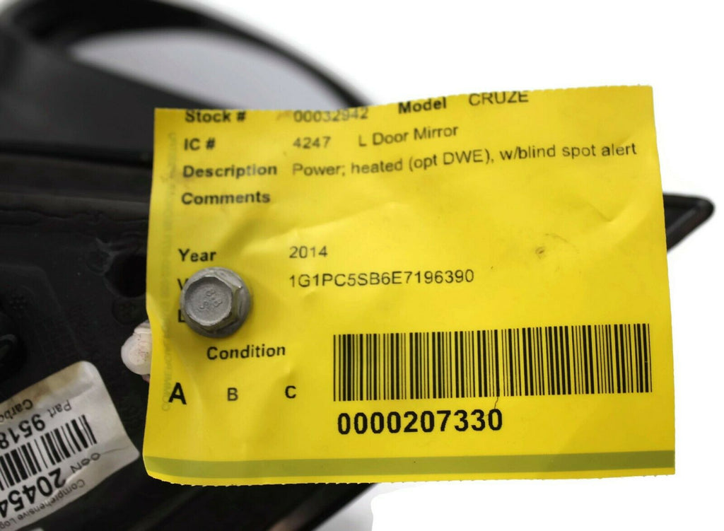 2011-2016 Chevy Cuze Driver Left Side Power Door Mirror Red 32942