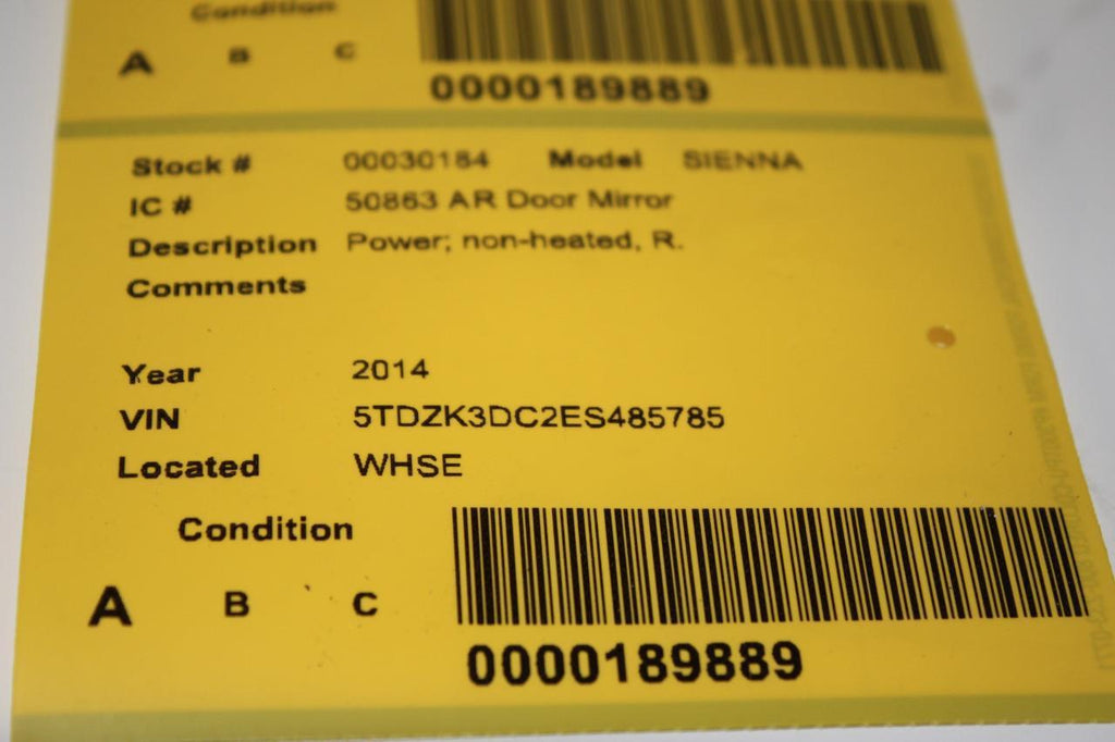 2013-2016 TOYOTA SIENNA PASSENGER RIGHT SIDE POWER DOOR MIRROR BLACK