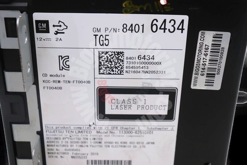 2015-2020 Chevy Tahoe Single Disc Cd Player 84016434