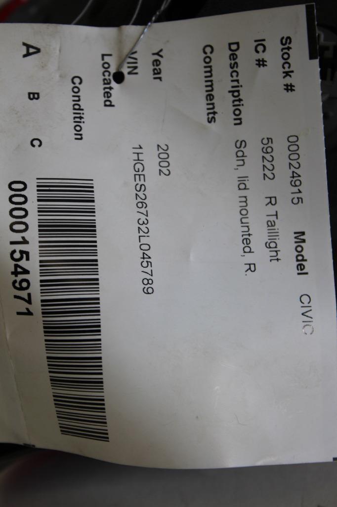 2001-2002 HONDA CIVIC PASSENGER SIDE REAR INNER TAIL LIGHT