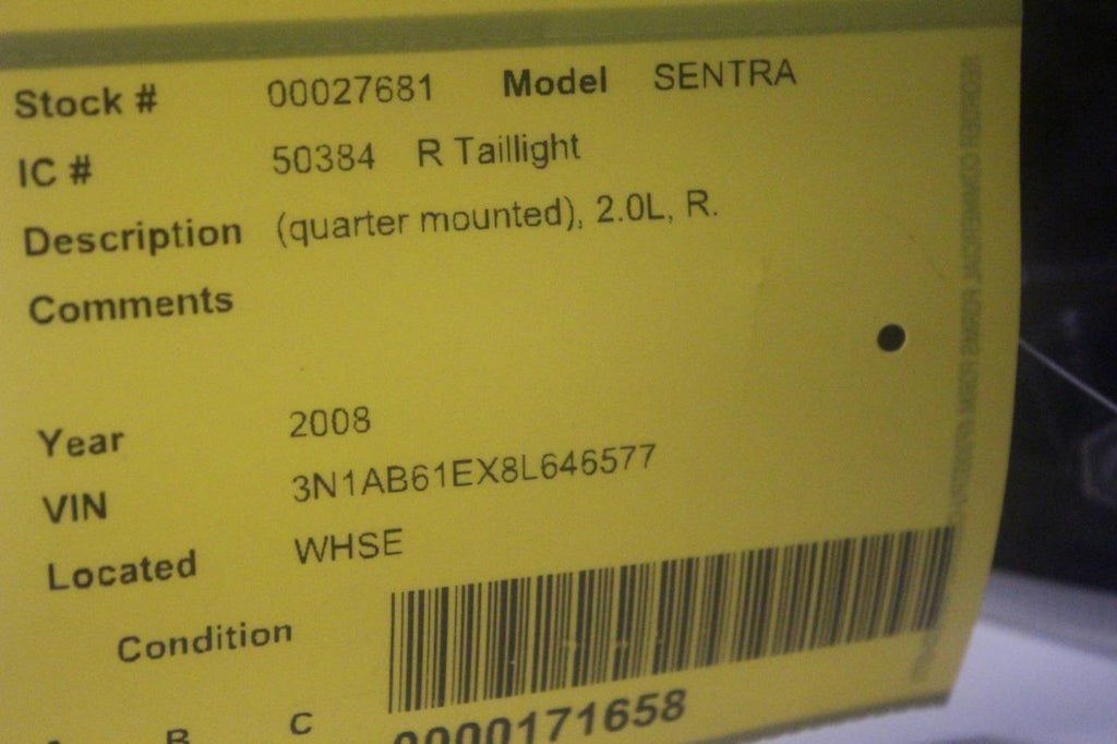 2007-2009 NISSAN SENTRA PASSENGER SIDE REAR TAIL LIGHT