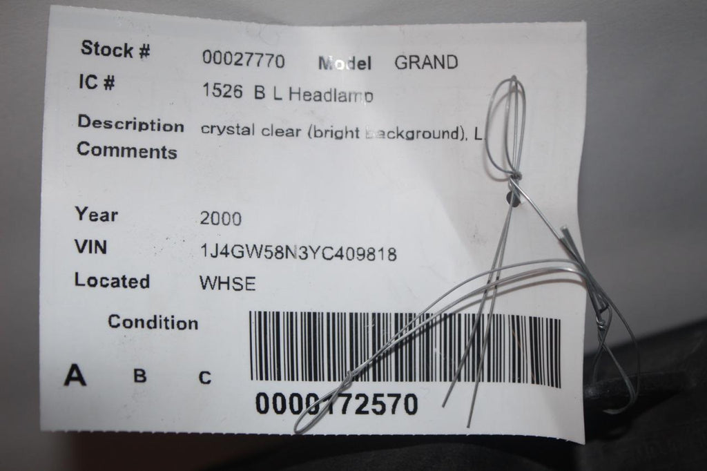 1999-2004 JEEP GRAND CHEROKEE FRONT DRIVER SIDE HEADLIGHT 27770