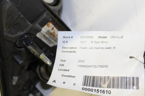 2000-2002 CADILLAC DEVILLE RIGHT PASSENGER POWER SIDE VIEW MIRROR
