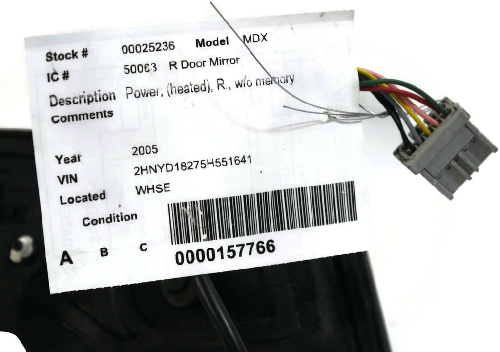 2001-2006 ACURA MDX PASSENGER RIGHT SIDE POWER DOOR MIRROR WHITE 25236