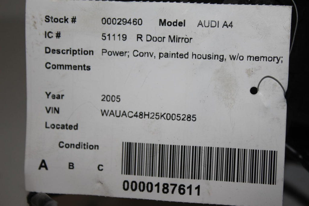 2002-2005 AUDI A4 PASSENGER RIGHT SIDE POWER DOOR MIRROR