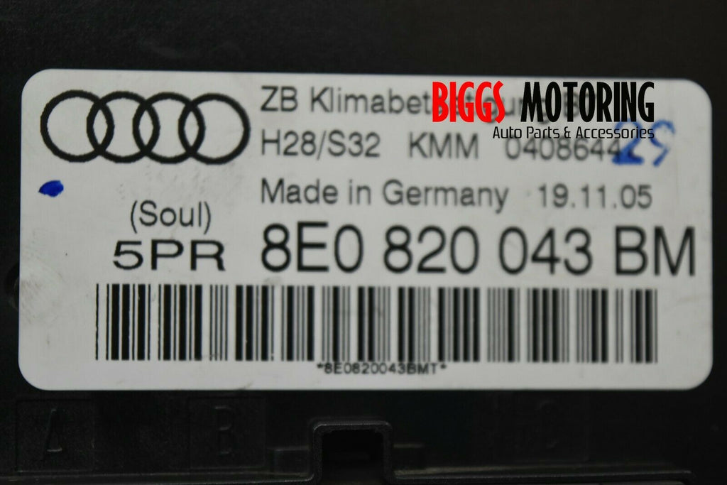 2003-2006 Audi A4 Carbriolet Ac Heater Climate Control Unit 8E0 820 043 BM