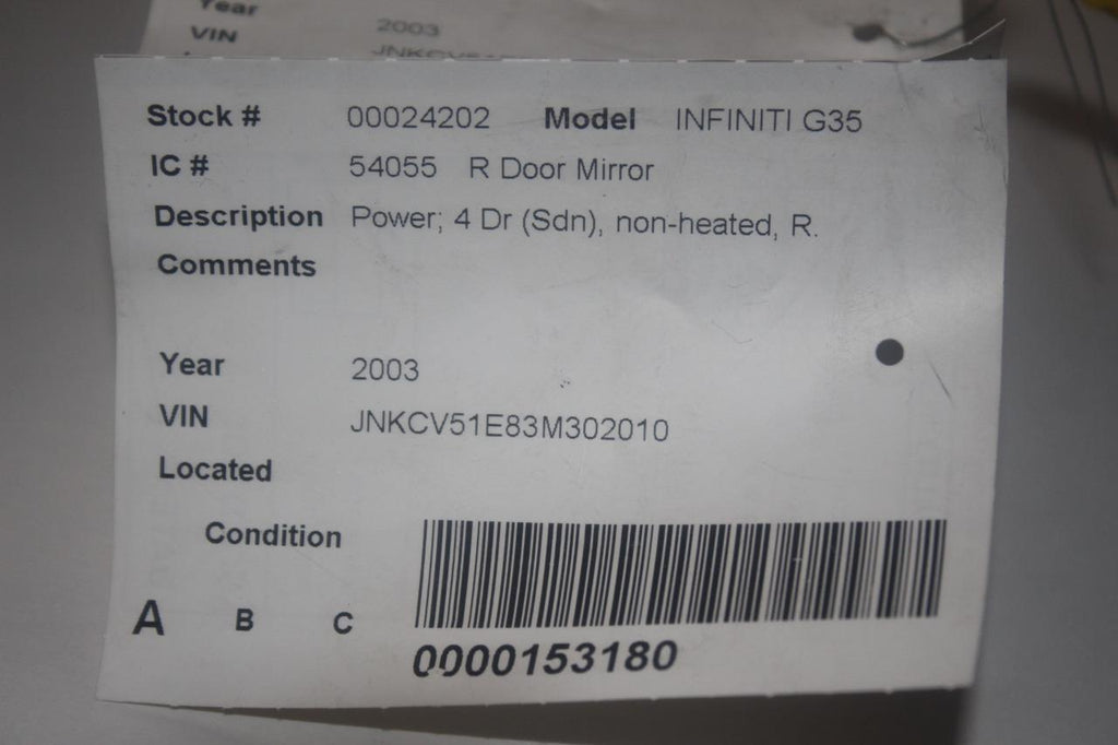 2003-2006 INFINITI G35 SEDAN PASSENGER RIGHT SIDE POWER DOOR MIRROR SILVER