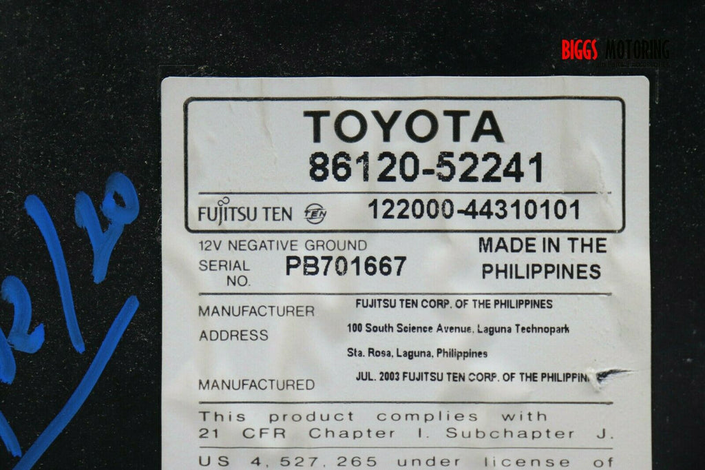 2003-2007 Toyota Highlander Radio Stereo Cd Player 86120-52241