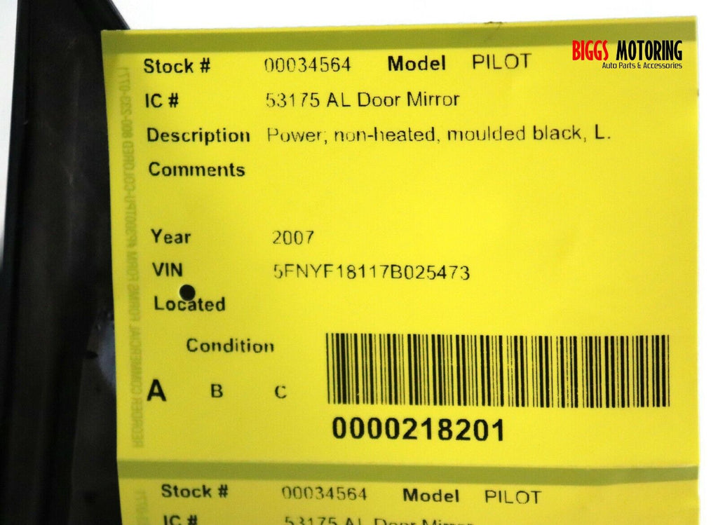 2003-2008 Honda Pilot Driver Left Side Power Door Mirror Black 34564