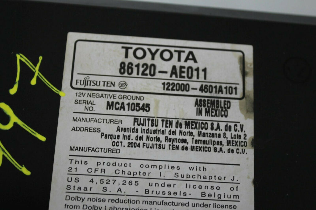 2004-2006 Toyota Sienna 16862 Radio Stereo Cassette Cd Player 86120-AE011