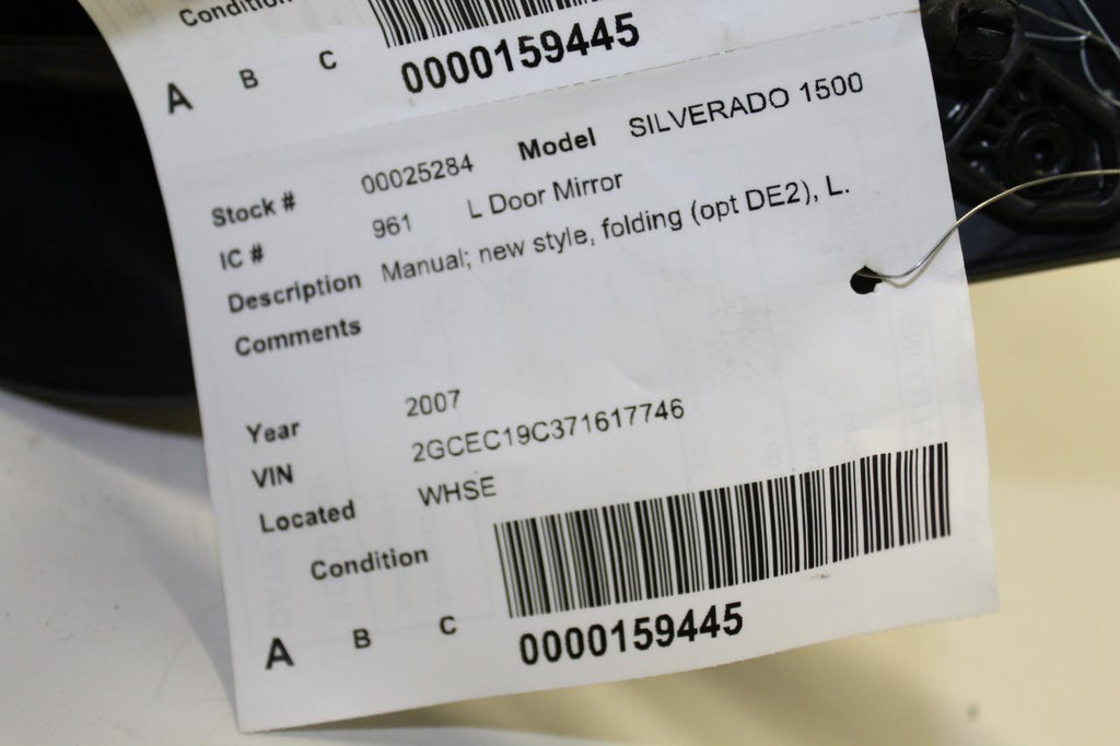 2007-2010 CHEVY SILVERADO 1500 DRIVER LEFT SIDE MANUAL DOOR MIRROR BLACK 25284