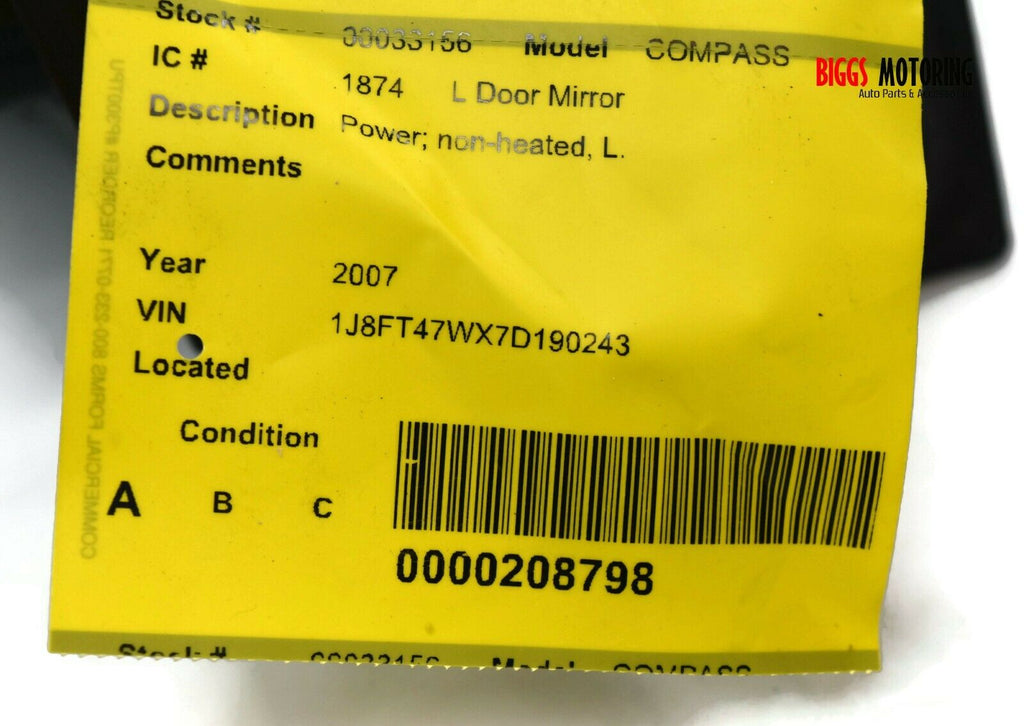 2007-2012 Jeep Compass Driver Left Side Power Door Mirror Black 33156