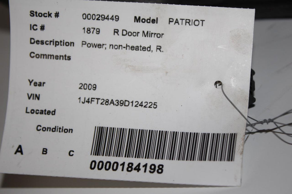 2007-2012 JEEP PATRIOT PASSENGER RIGHT SIDE POWER DOOR MIRROR BLACK