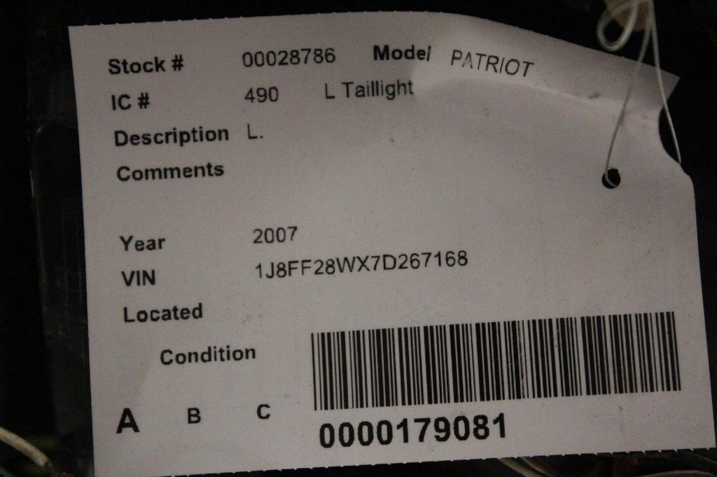 2007-2016 JEEP PATRIOT DRIVER SIDE REAR TAIL LIGHT 28786