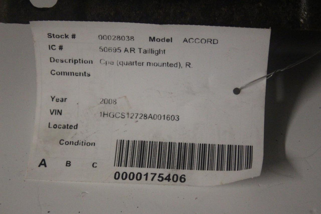 2008-2012 HONDA ACCORD PASSENGER RIGHT SIDE REAR TAIL LIGHT 28038