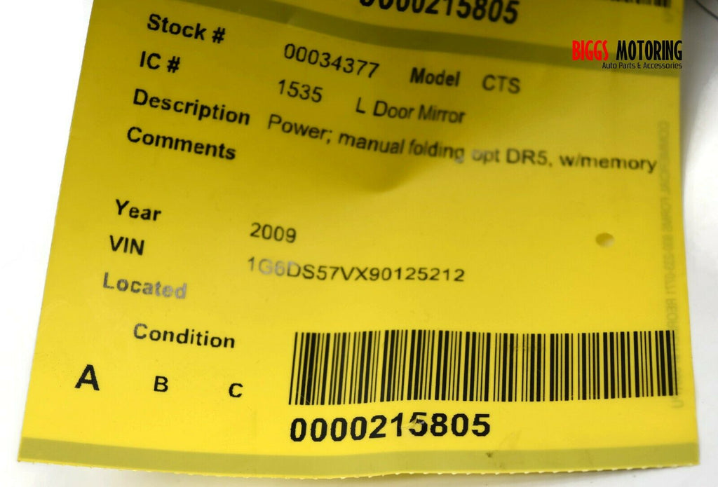 2008-2014 Cadillac CTS Driver Left Power Door Mirror Gray 34377