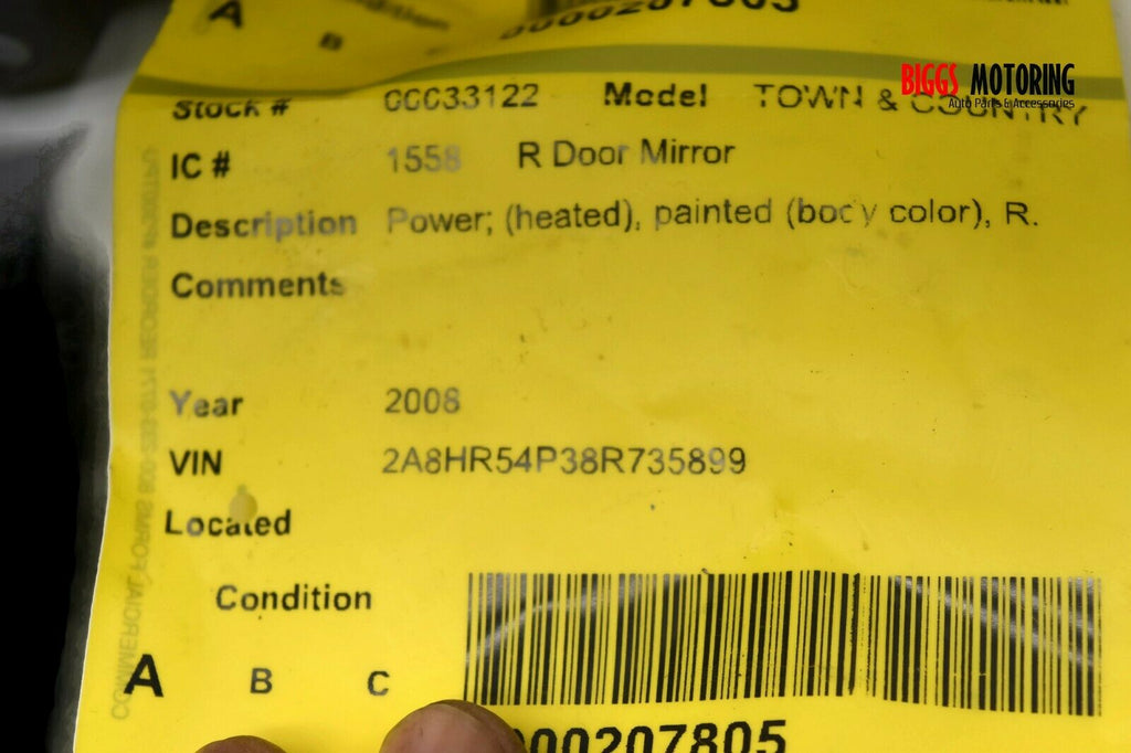 2008-2016 Chrysler Town & Country Passenger Side Power Door Mirror Blue 33122
