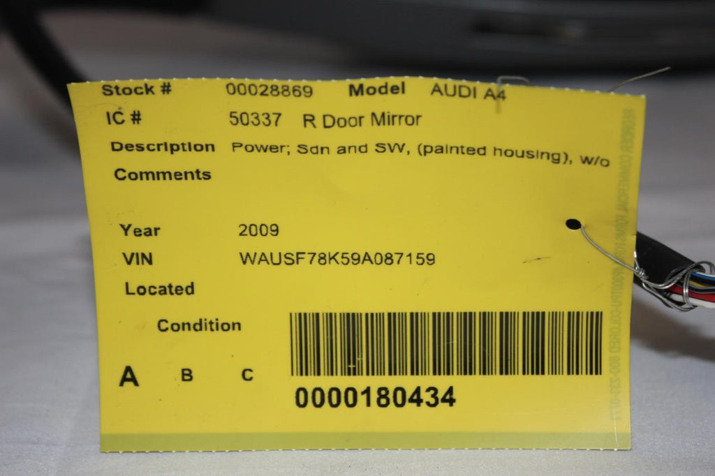 2009-2014 AUDI A4 SDN PASSENGER RIGHT SIDE POWER DOOR MIRROR SILVER