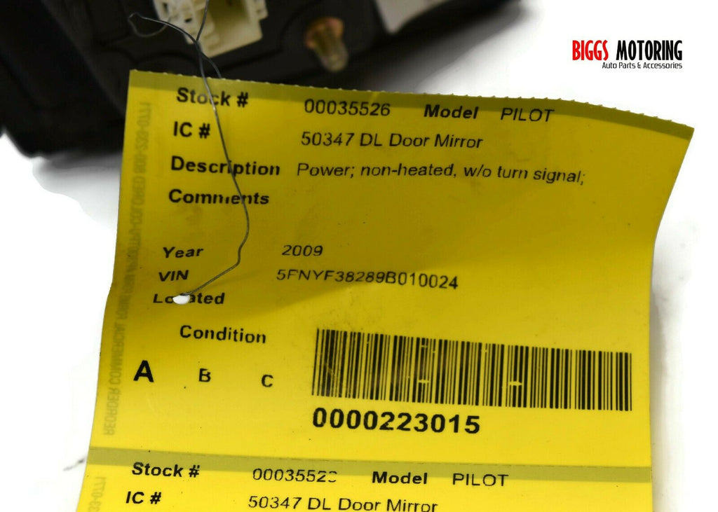 2009-2015 Honda Pilot Driver Left Power Door Mirror Black 35526
