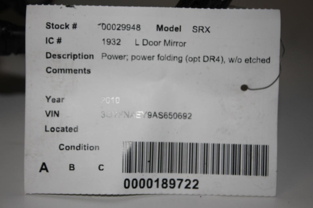 2010-2016 CADILLAC SRX LEFT SIDE POWER DOOR MIRROR BLACK