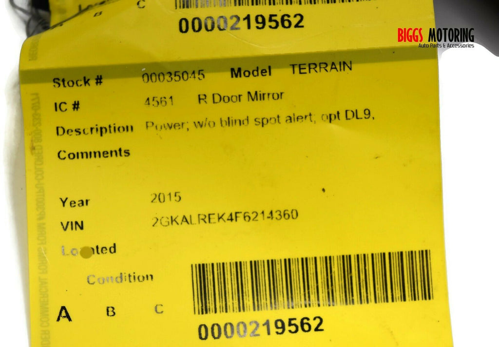 2010-2017 Gmc Terrain Passenger Right Side Power Door Mirror Chrome 35045