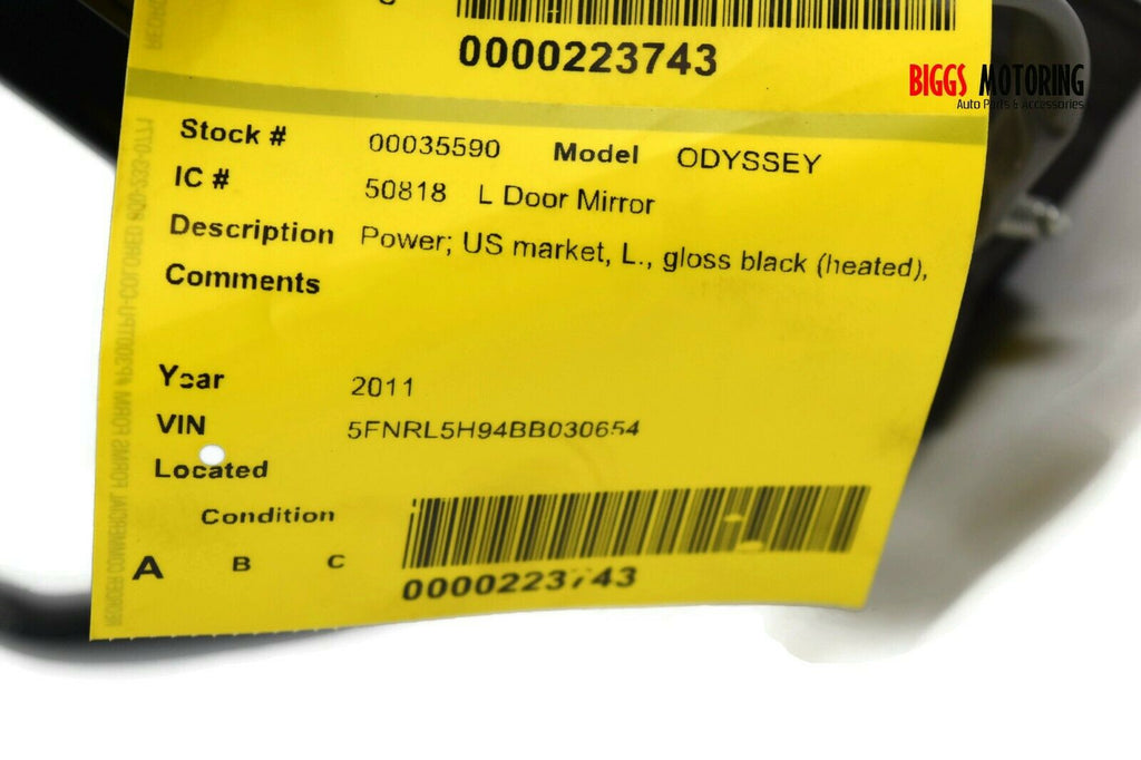 2011-2013 Honda Odyssey Driver Left Side Power Door Mirror Black 35590