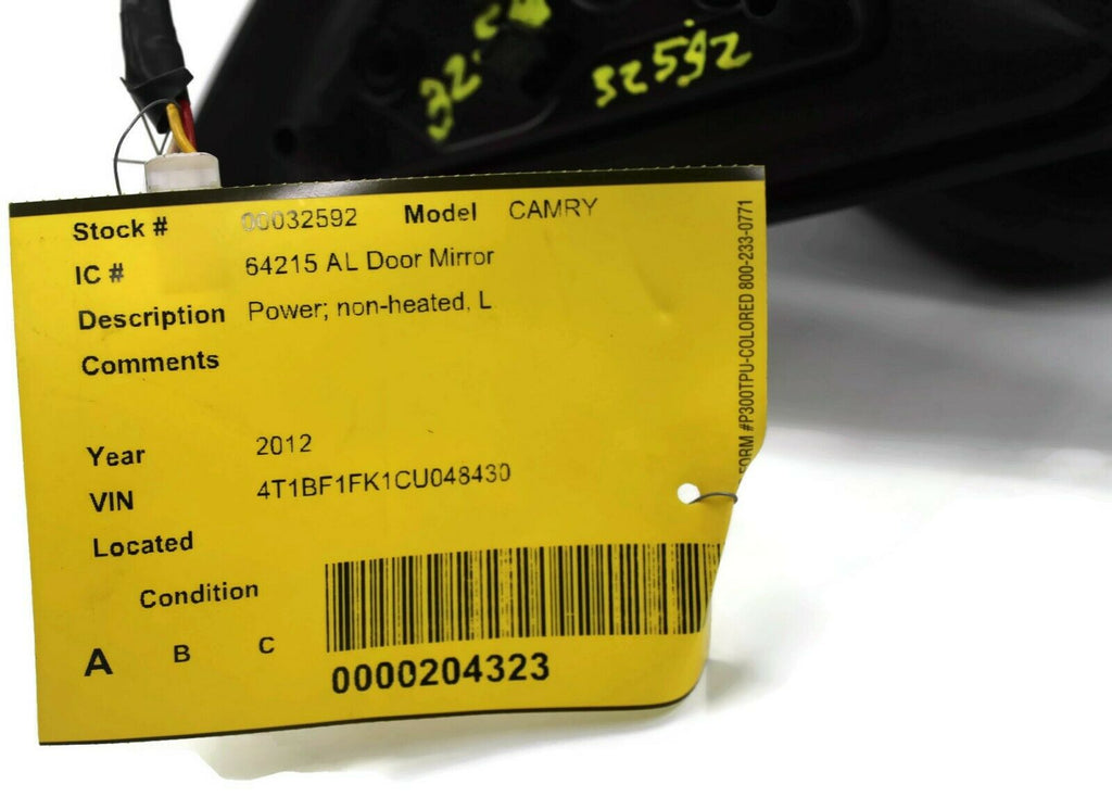 2012-2014 Toyota Camry Driver Left Side Power Door Mirror Black 32592