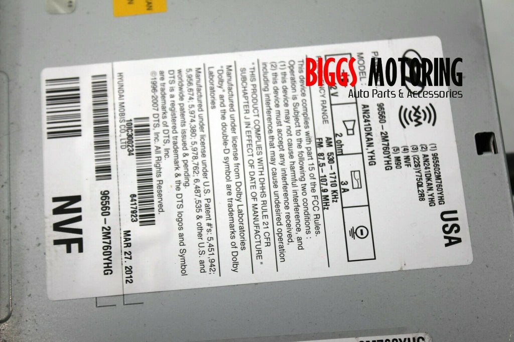 2012-2015 Hyundai Genesis Navigation Radio Stereo Cd Player 965560-2M760YHG