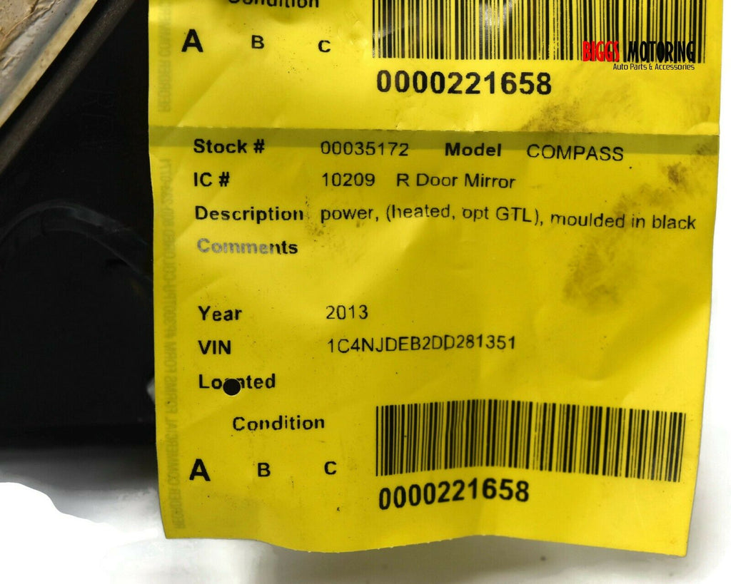 2012-2015 Jeep Compass Passenger Right Side Power Door Mirror Black 35172