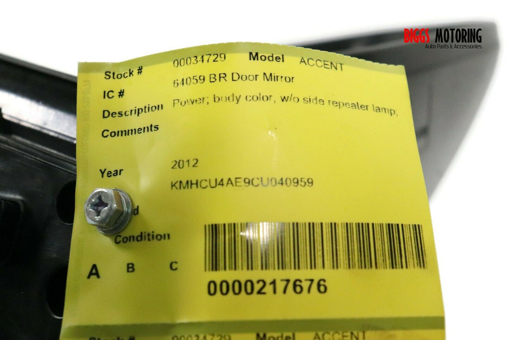 2012-2016 Hyundai Accent Passenger Right Side Power Door Mirror Black 34729