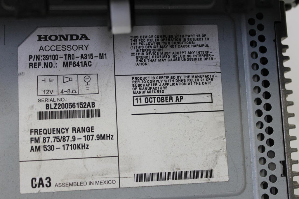2012 Honda Civic Radio/Cd Player 39100-Tr0-A315-M1