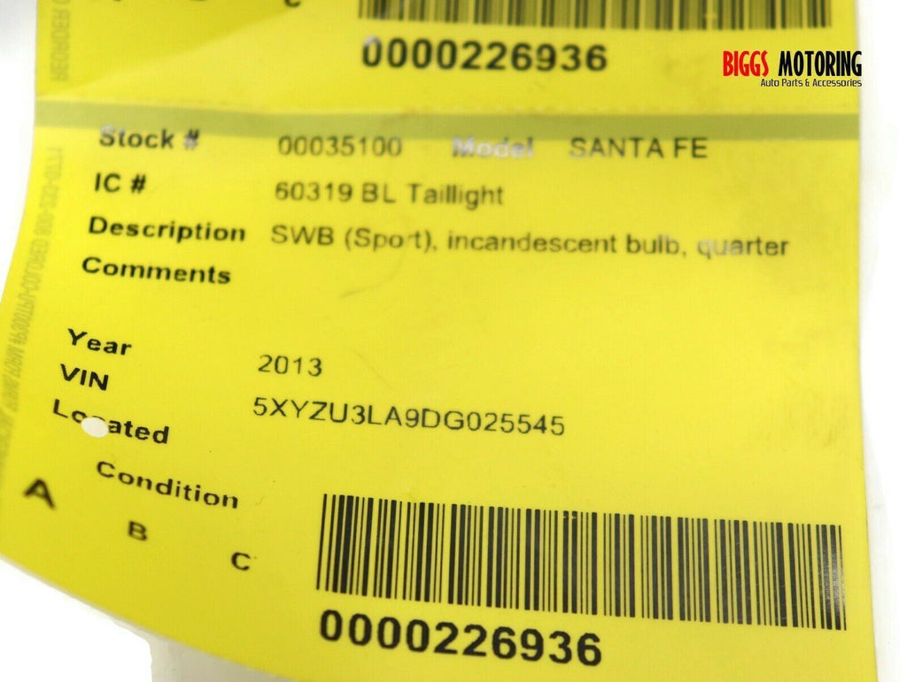2013-2016 Hyundai Santa Fe Driver Left Side Rear Tail Light 35100
