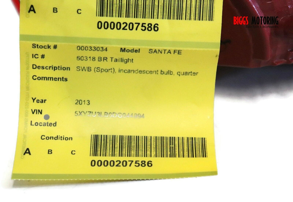 2013-2016 Hyundai Santa Fe Passenger Right Side Rear Tail Light 33034