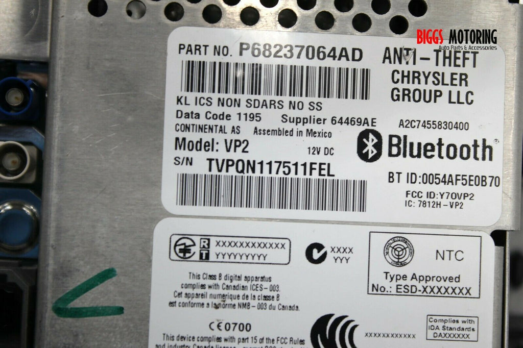 2014-2016 Jeep Cherokee Radio Stereo VP2 Display Screen P68237064AD
