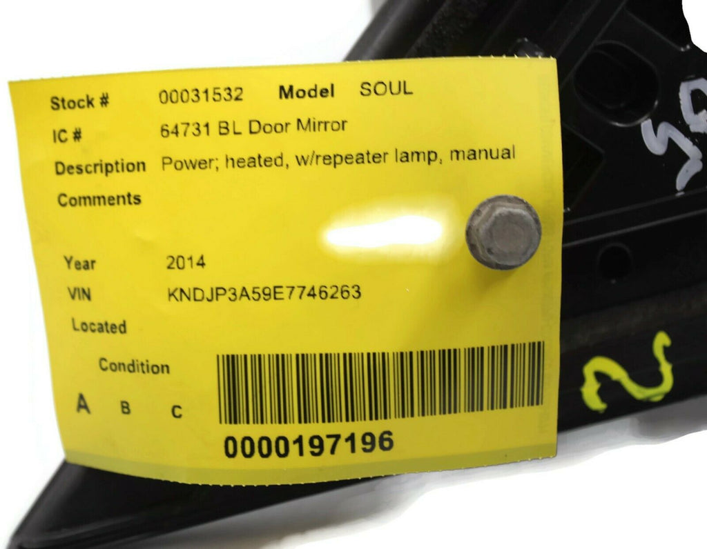 2014-2016 Kia Soul Driver Left Side Power Door Mirror Silver 31532