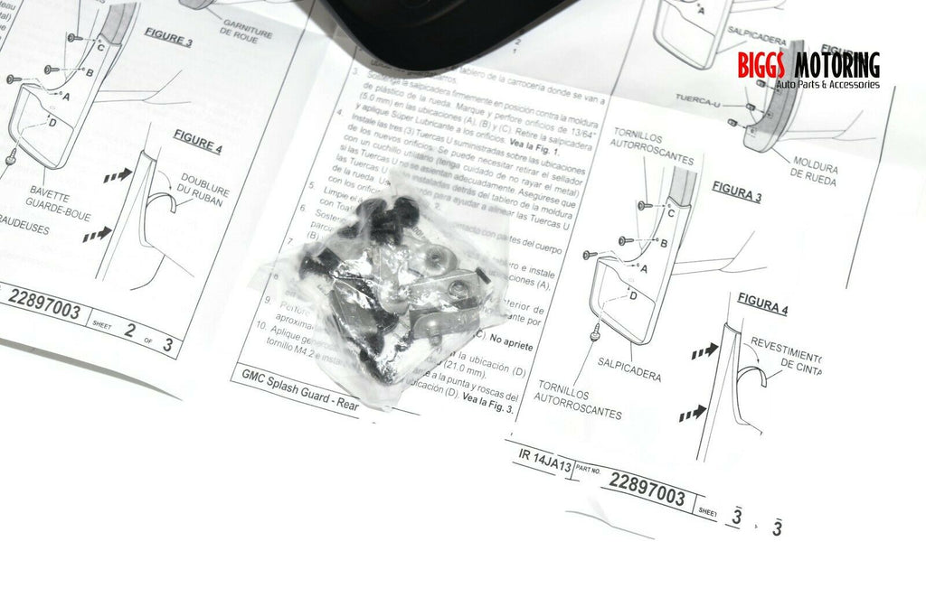 Fa ctory Oem New Open Box Passenger & Driver Side Rear Mud Splash Guard Item is In Excellent Working Order, Ready To Be Installed... Comes W/ Hardwares & Instruction See Pictures For Better Details