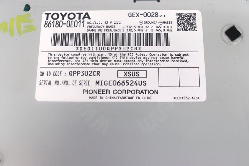 2014-2019 Toyota Highlander Audio Equipment Satellite Radio Receiver 86180-0E01