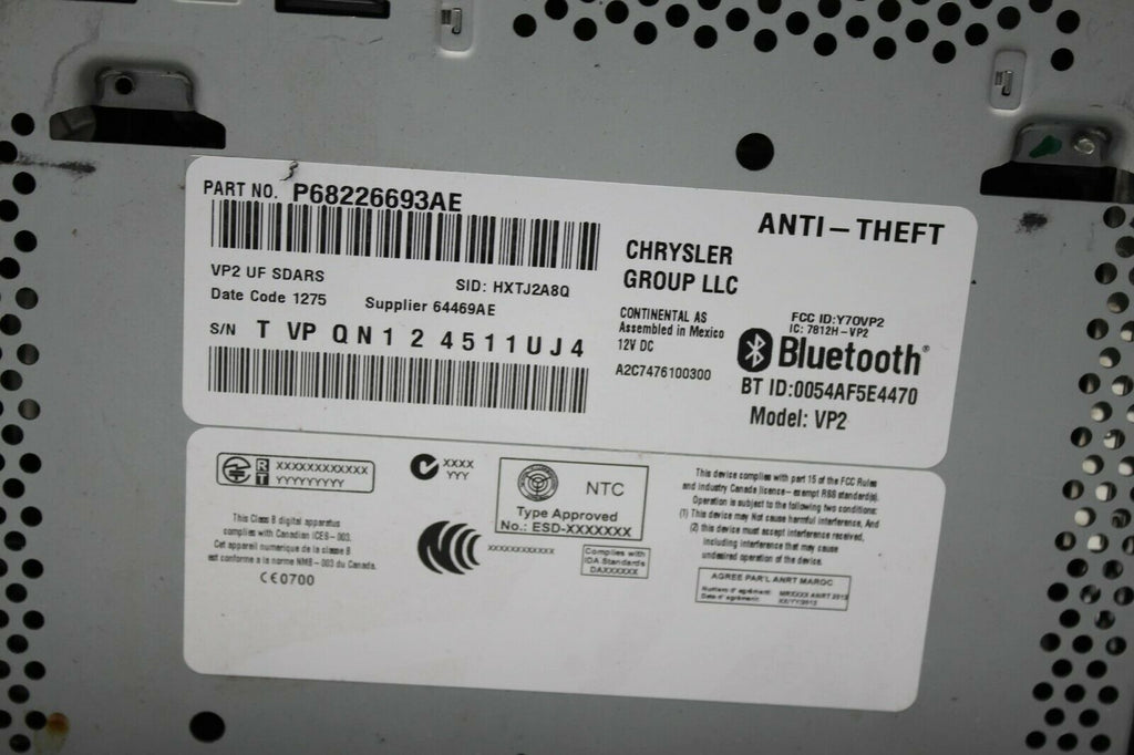 2015-2016 Chrysler 200 Radio Receiver W/ Bluetooth P68226693AE