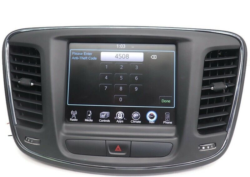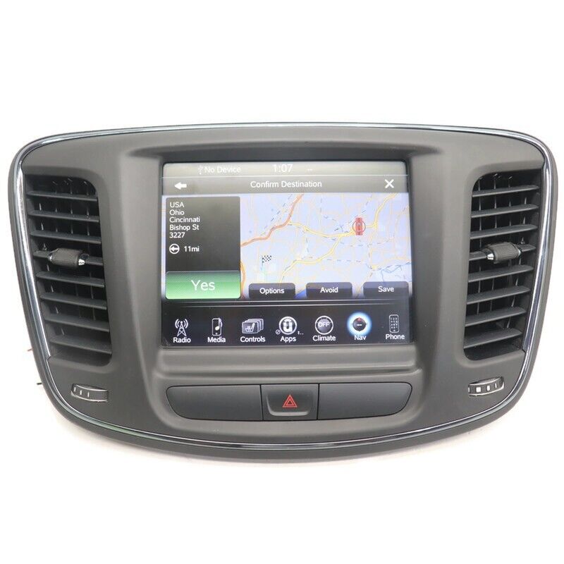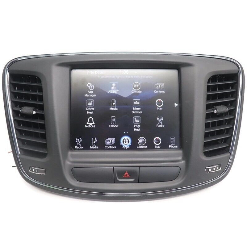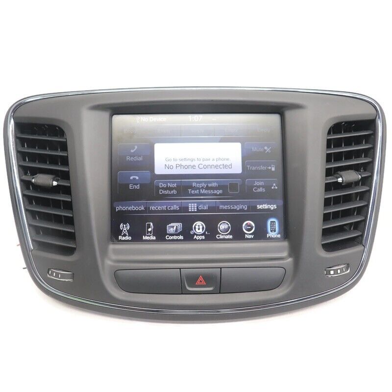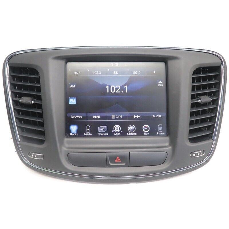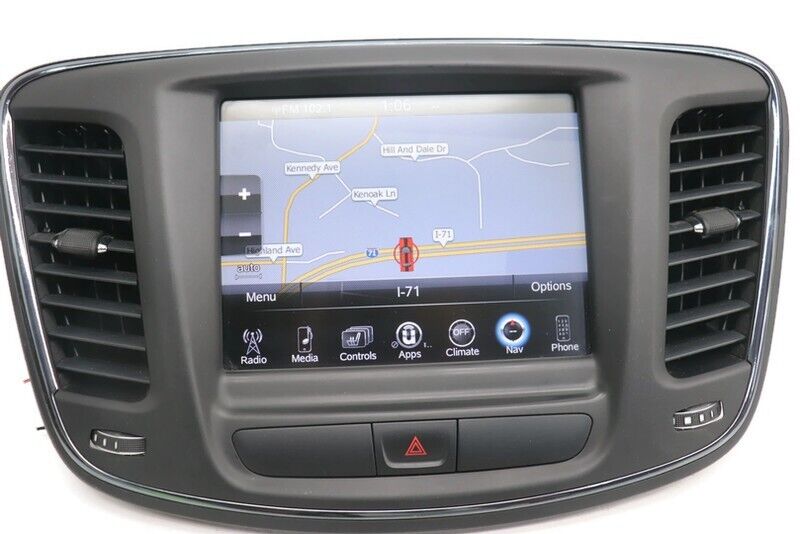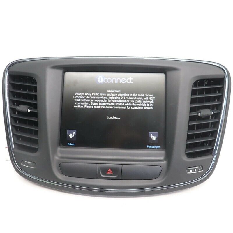 Fa ctory Oem Used VP4 Navigation Uconnect Radio Touch Display Screen W/ Bezel Comes Unlock .... Bench Tested Item is In Good Working Order, Ready To Be Installed... Item Will Show Signs Of Normal Used Wear, Minor Scratches, Scrapes, & Scuffs Etc See Pictures For Better Details...