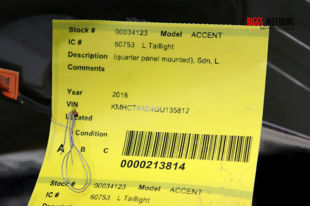 2015-2017 Hyundai Accent Driver Left Side Rear Tail Light 34123