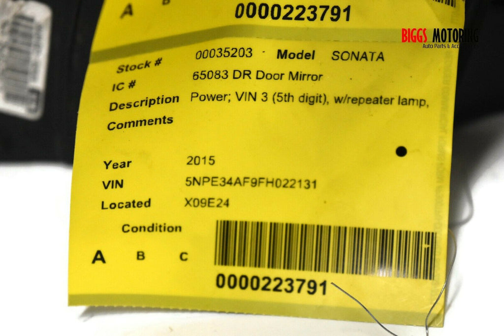 2015-2017 Hyundai Sonata Passenger Right Side Power Door Mirror Silver 35203