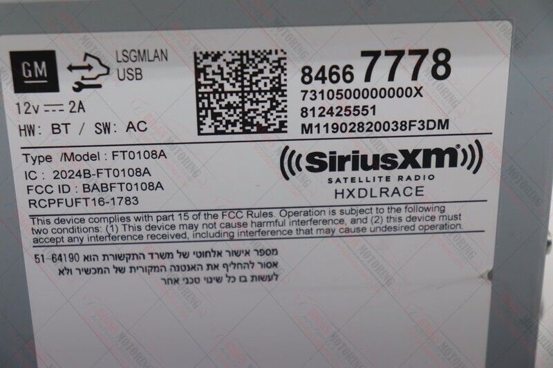 2019-2021 Chevy Malibu Radio Audio Equipment Receiver Module 84667778