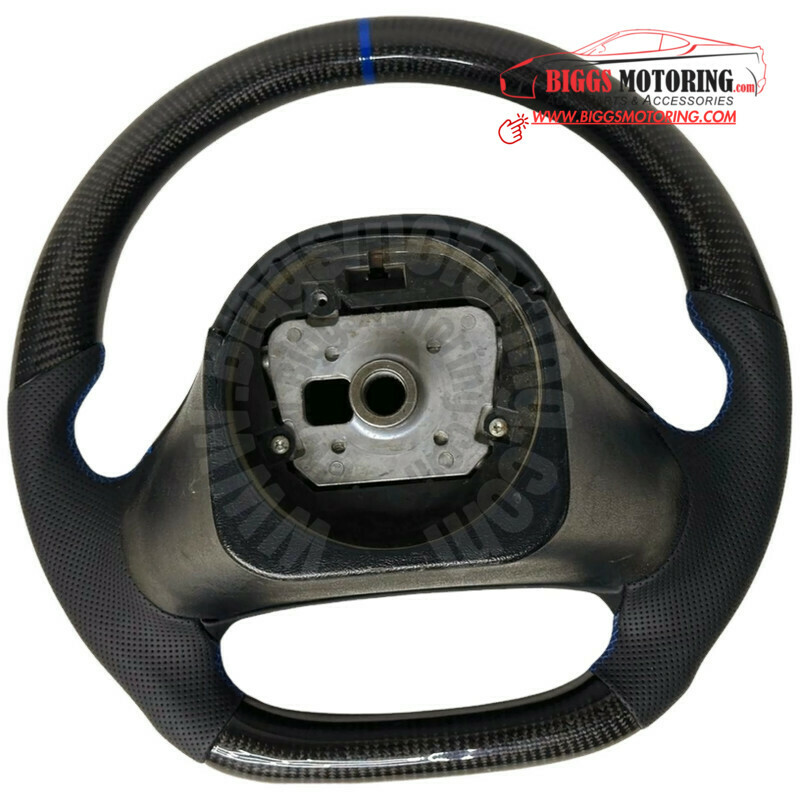 Factory Wheel Customized Perforated Leather , Gloss Forged Carbon, With Blue Centerline Item is In Excellent Working Order, Unique Sporty ,Trendy & Executive Look See Pictures For Better Details